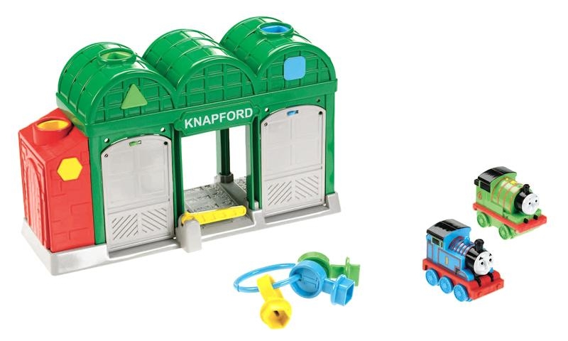Zajezdnia Knapford z kluczami z serii Tomek i Przyjaciele łączy naukę i zabawę. Dziecko poznaje zasadę przyczyna skutek. By otworzyć drzwi stacji trzeba dopasować klucz o konkretnym kolorze i kształcie. Do wyboru są trzy klucze, otwierające drzwi dwóch garaży i pokoju konduktora.