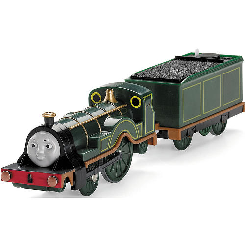 Tomek i Przyjaciele Emily R9237 - Serial animowany Tomek i Przyjaciele opowiada o lokomotywach pracujących na wyspie Sodor. Mają one cechy ludzkie i przewożą ludzi i różne towary pomiędzy różnymi stacjami. Emily R9237 to świetne uzupełnienie kolekcji Tomek i Przyjaciele. Kolejką z wagonikiem, można bawić się popychając go lub ciągnąc po torach. Można też "włączyć silniki" i patrzeć jak lokomotywa jedzie sama lub ciągnie wagony. Kolejka z kolekcji Track Master.
