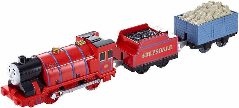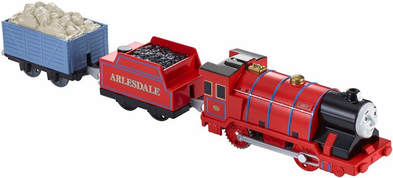 Te filmowe lokomotywki z napędem TrackMaster™ od Fisher-Price® są inspirowane nowymi bohaterami z filmu DVD Tomek i Przyjaciele pt. „Opowieść o odwadze“. Innowacyjna konstrukcja sprawia, że lokomotywy TrackMaster™ jadą szybciej i wspinają się wyżej, dzięki czemu Tomek i jego przyjaciele rozwijają większe prędkości, wjeżdżają na wyższe wzniesienia i przeżywają wspanialsze przygody! Przesuń przełącznik i zobacz, jak wyruszają w kolejną ekscytującą podróż!