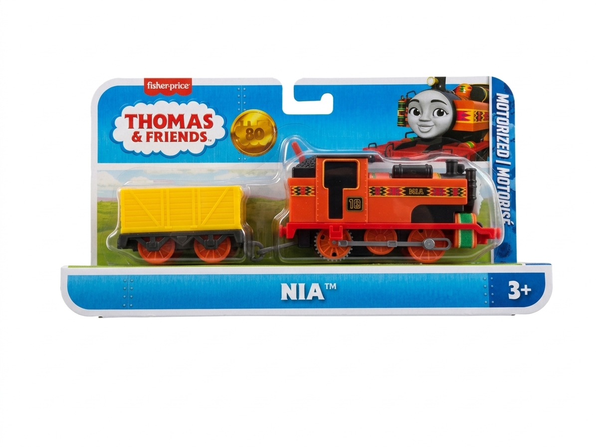 Wyrusz w pełne przygód podróże z bohaterami Tomek i Przyjaciele dzięki lokomotywie od Fisher-Price! Motorized Nia to klasyczna, napędzana bateryjnie lokomotywa, która pozwala dzieciom odtwarzać ulubione sceny z Wyspy Sodor. Wystarczy przesunąć przełącznik na górze pojazdu, aby wprawić pociąg w ruch i rozpocząć własne kolejowe przygody. Lokomotywa stylizowana jest na znaną postać Nia i zawiera wagon. Dzięki specjalnym zaczepom dzieci mogą łączyć lokomotywę z innymi pociągami, wagonami i zestawami z serii, tworząc rozbudowane historie i scenariusze zabawy.