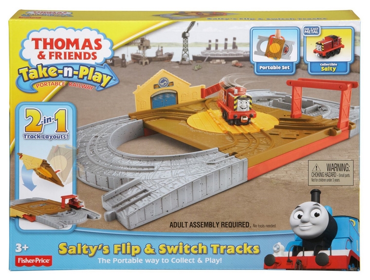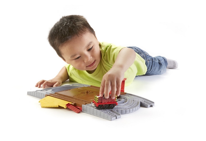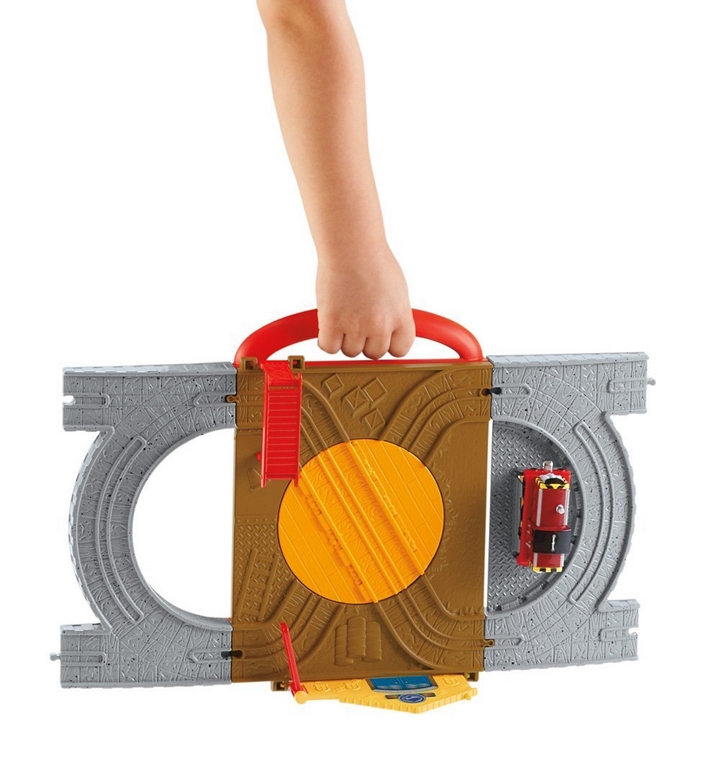 Przekładaj tory i wybierz jeden z dwóch układów! Sylwek czeka w dokach na ostatnią dostawę z barek towarowych. Przełóż środkowy panel, aby odkryć obrotnicę i punkt załadunku! Puść Sylwka wzdłuż toru, aby mógł powiadomić kontrolera o przychodzącej dostawie. W zestawie po jednej stronie układ typu „ósemka”, a po drugiej pełna pętla. Zabawka jest przenośna i można ją łatwo wszędzie wziąć ze sobą.