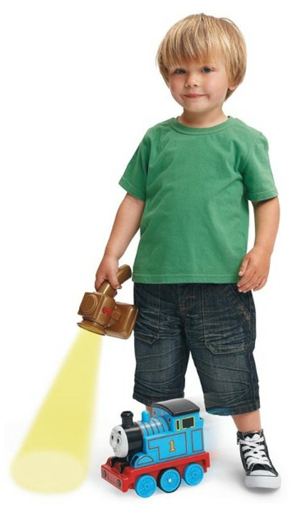 Tomek Sterowany Światłem T7324 pozwala dziecku zostać prawdziwym maszynistą i prowadzić model lokomotywy z filmu Tomek i Przyjaciele. Za pomocą specjalnej lampy dziecko może poruszać strumieniem światła za którym Tomek będzie podążać. Podczas ruchu zabawka będzie wypowiadając znane z bajki frazy i wydajać efekty dźwiękowe charakterystyczne dla lokomotywy. Ponadto interaktywnym Tomkiem można również sterować za pomocą 3 przycisków na lampie, po ich naciśnięciu zabawka wykona ósemkę, kółko lub zygzak. Teraz z Tomkiem możesz pojechać gdzie tylko zechcesz. Zabawka w języku angielskim.