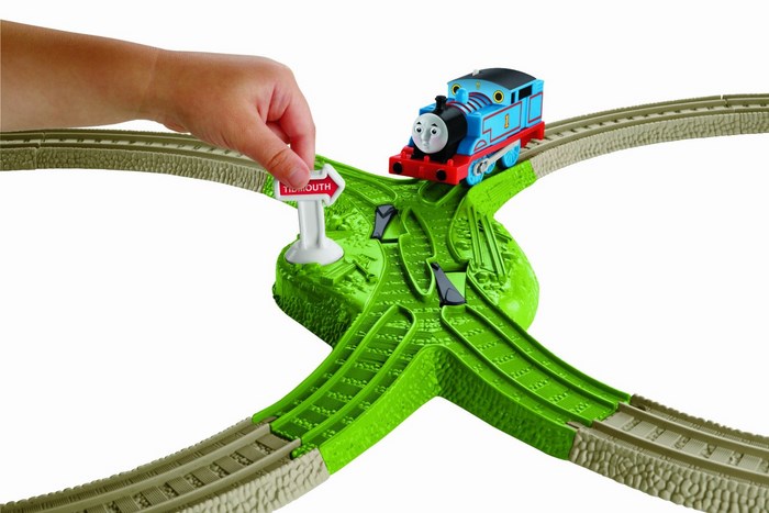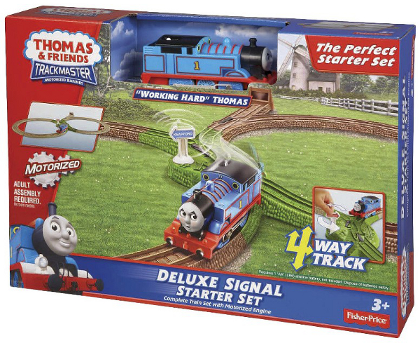 Rozbuduj swoje kolejki TrackMaster™ o nowy zestaw startowy Deluxe! Zestaw ten zawiera układ torów w kształcie ósemki powiększony o 4-torową zwrotnicę i stację sygnałową. Puść Tomka, aby przejechał przez stację sygnałową, a przełączniki torów przestawią się automatycznie! Znaki sygnalizatorów podniosą się i wskażą, którędy Tomek pojedzie dalej.