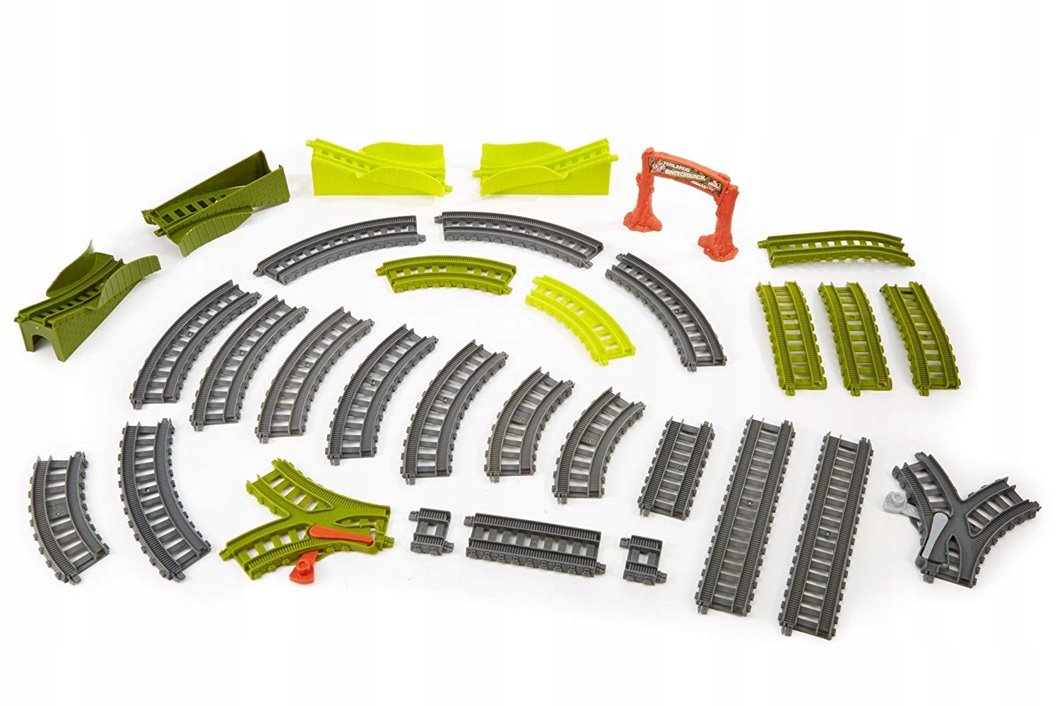 Tomek i Przyjaciele zestaw torów do rozbudowy DVF74 to wyjątkowy zestaw pozwala na wiele możliwości rozbudowy kolejki z serii Tomek i Przyjaciele Track Master. System Track Master to seria pociągów, torów i akcesoriów, tworzących świat lokomotyw z buźkami. Zestawy torów do rozbudowy z akcesoriami pomogą Ci zbudować jeszcze większy, jeszcze bardziej ekscytujący świat lokomotywek z nowymi układami torów, budowlami, urządzeniami i dodatkami. Tory można układać na wiele różnych sposobów, dzięki czemu zabawa jest jeszcze bardziej kreatywna.
