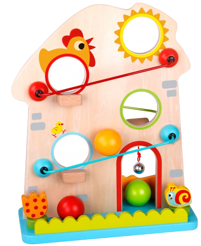 Domek z Piłeczkami to fantastyczna zabawka dla każdego malucha. Domek po obu stronach posiada tory do zjeżdżania 3 kolorowych kuleczek. Dzwoneczek zamieszczony na domku sygnalizuje koniec trasy. Kule zjeżdżając muszą pokonać różne przeszkody.