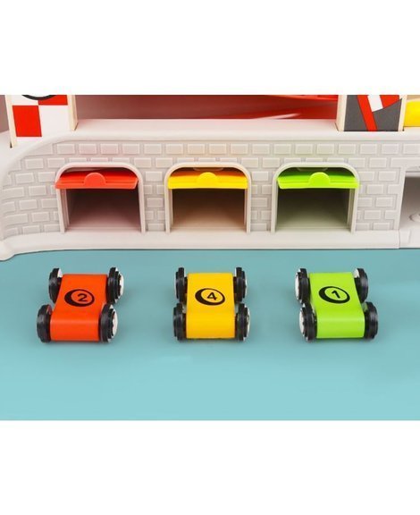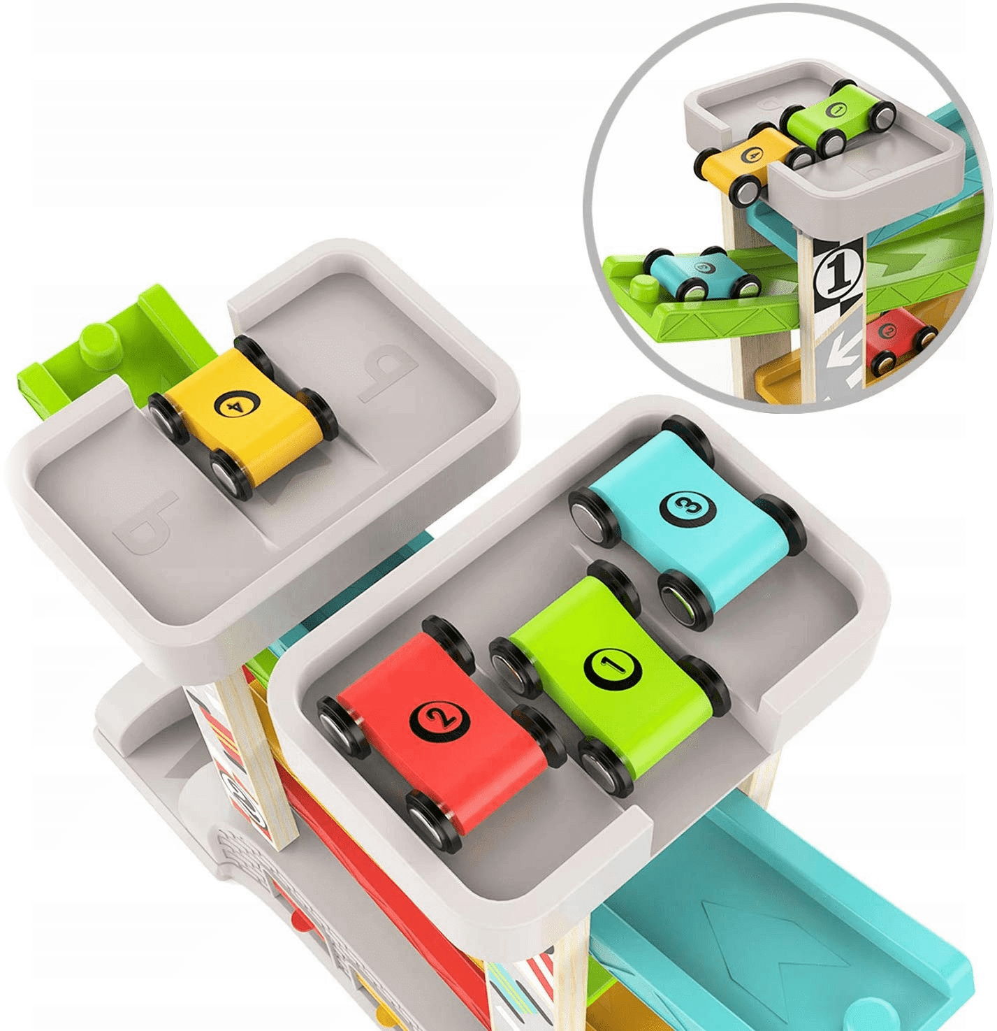 Top Bright Drewniany Tor Samochodowy 4 rampy garaże + autka 131073