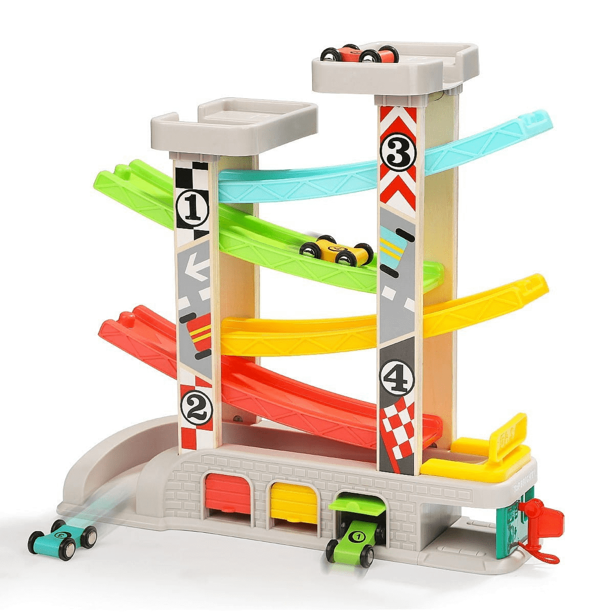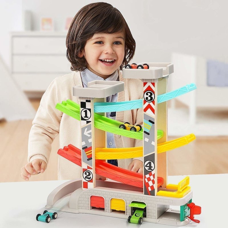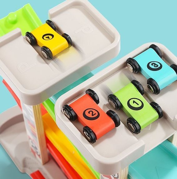 Drewniany tor samochodowy Top Bright to świetna zabawa dla wielbiciela autek. Tor posiada mnóstwo możliwości zabawy. Mamy do wykorzystania 4 rampy, 3 garaże, myjnie z możliwością tankowania i przede wszystkim 4 kolorowe autka. Cały zestaw wykonany został z wysokiej jakości drewna, co sprawia, że zabawka może posłyżyć nam długie lata.