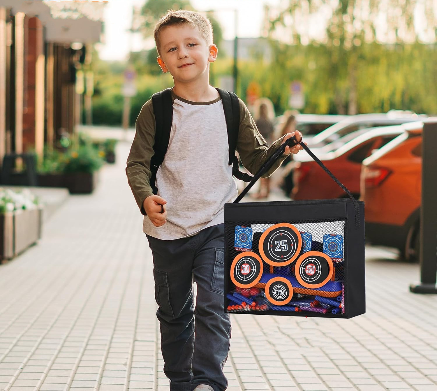 Torba tarcza cel do Nerf pojemna na strzałki i dodatki z uchwytem 4 cele