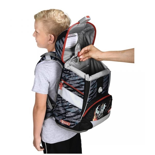 - Komora główna z przegrodą na ciężkie książki - Przegroda wewnątrz głównej komory tornistra umożliwia umiejscowienie ciężkich książek i zeszytów (lub innych przedmiotów, które danego dnia są najcięższe) blisko kręgosłupa, dzięki czemu odczucie ciężaru zmniejsza się, jest to też zdrowsze dla kręgosłupa.