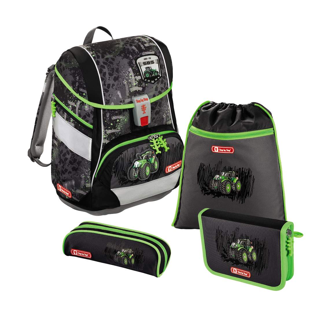 Tornister Step by Step 2w1 Green Tractor Zestaw 4 el. 138957