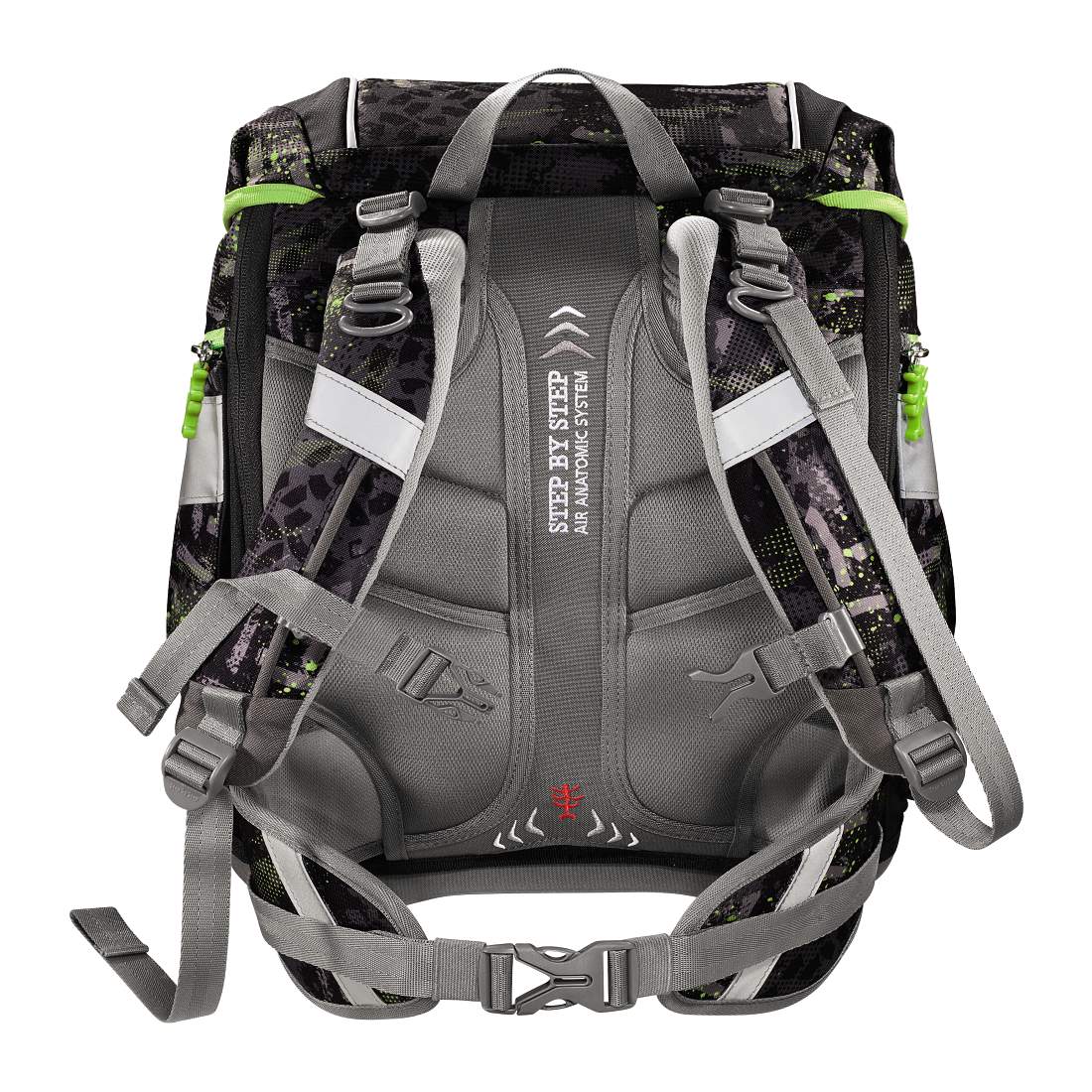 - Oddychająca wyściółka pleców - System Anatomic Air wraz ze specjalną oddychającą wyściółką pozwala na komfortowe noszenie tornistra. Specjalne kanaliki napowietrzające zapewniają odpowiednią wentylację.