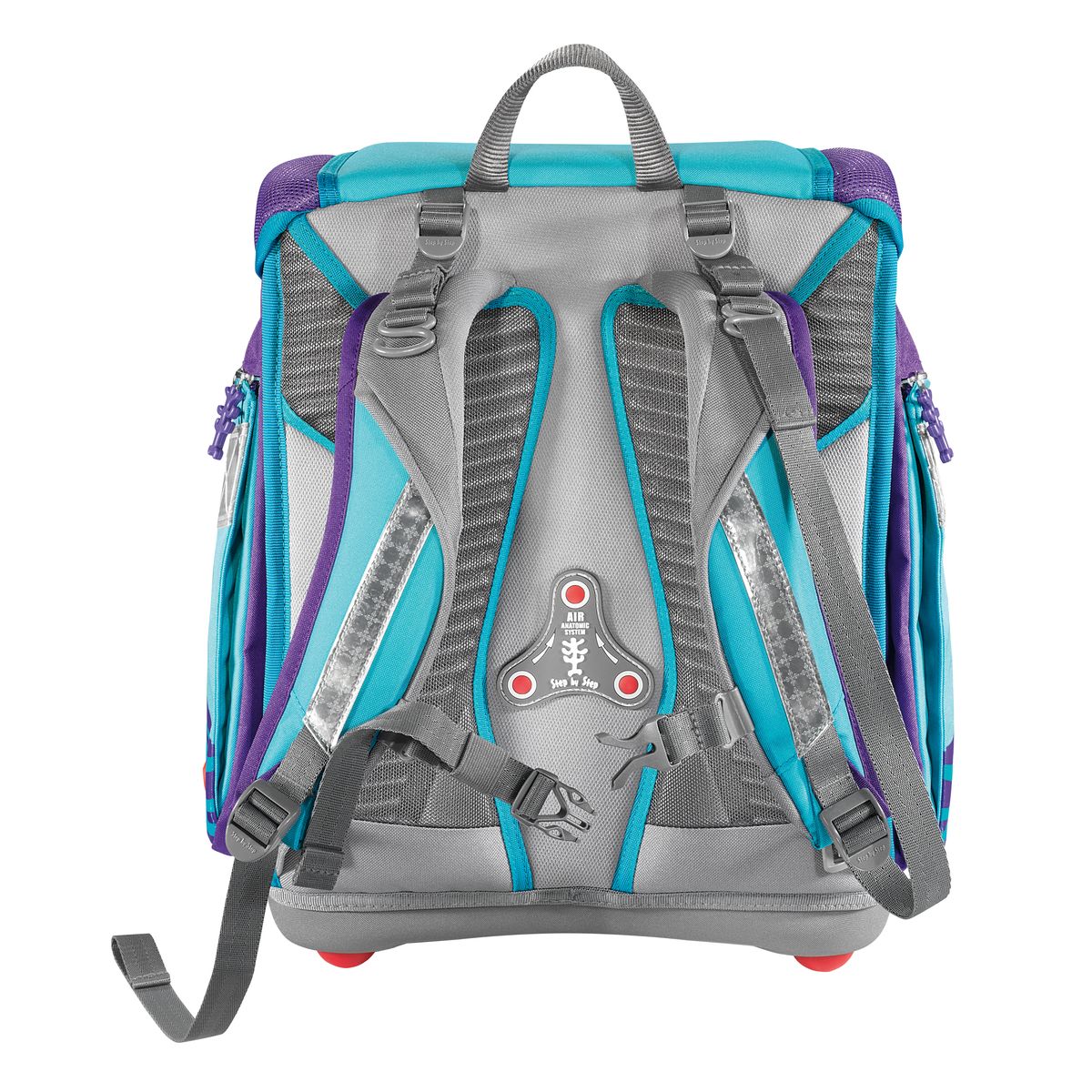 - Oddychająca wyściółka pleców - System Anatomic Air wraz ze specjalną oddychającą wyściółką pozwala na komfortowe noszenie tornistra. Specjalne kanaliki napowietrzające zapewniają odpowiednią wentylację.