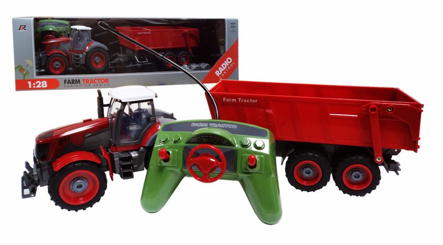 Traktor z przyczepą na pilota 8302B to atrakcyjna zabawka dla najmłodszych miłośników pojazdów. Traktor posiada pełne sterowanie -tył, przód, lewo oraz prawo. Dodatkowo wyposażony jest w sterowaną z pilota przyczepę. Przyczepa posiada korbę, która ułatwia jej podłączenie. Całość została wykonana z plastiku z metalowymi elementami oraz gumowymi oponami.