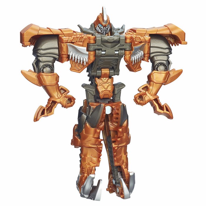 Hasbro Transformers Grimlock A6157 to sprzymierzeniec Autobotów, chociaż niektóre się zasanawiają dlaczego. Charakterem bardziej pasuje do Deceptikonów, jest agresywny i nienawidzi słabości. Grimlock jest kapitanem Dinobotów. Transformuj figurki tak jak w filmie Transformers 4! Wystarczy nacisnąć lub pociągnąć za wybraną część i Twoja figurka w okamgnieniu zamieni się w robota!