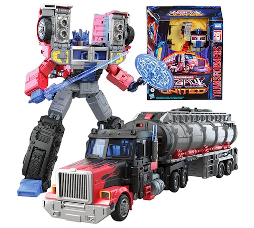 Optimus Prime to jeden z naczelnych Autobotów, który w odsłonach marki Hasbro doczekał się wielu rozmaitych wydań. W linii Transformers Legacy posiada nieco odmienioną zbroję z potężnymi naramiennikami, jednak nadal utrzymany jest w kolorystyce niebiesko – czerwonej, a w ręku trzyma miecz i dodatkowe akcesoria bojowe. Laser Optimus Prime może zostać przetransformowany do poziomu ciężarówki z cysterną, zaś cała przebudowa obejmuje 29 pojedynczych kroków