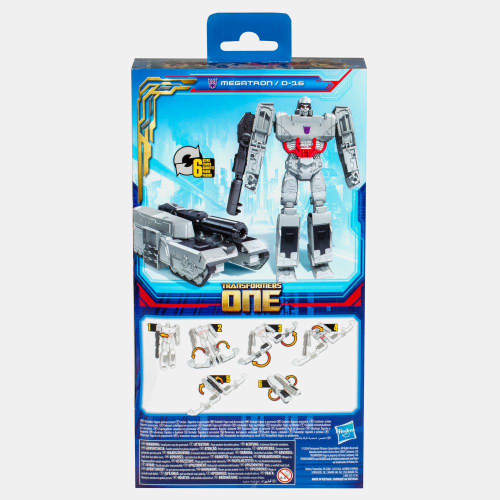 Odkryj potęgę Megatrona w inspirowanej filmem Transformers One figurce z funkcją transformacji! Model o wysokości 28 cm zmienia się z robota w cybertronicki czołg, oferując dynamiczną i pełną akcji zabawę. Prosty mechanizm przemiany sprawia, że dziecko może samodzielnie przekształcać figurkę, rozwijając wyobraźnię i zdolności manualne. To idealna propozycja dla fanów robotów, pojazdów i epickich bitew.