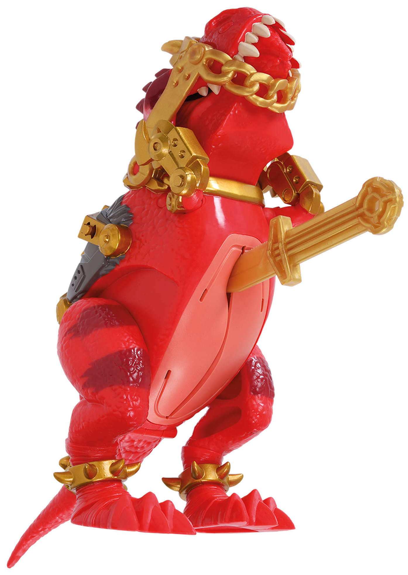 Otwórz klatkę ze swoim olbrzymim Dinozaurem T-Rex. Zdejmij kaganiec z paszczy dinozaura. Naciśnij kolce na jego głowie, aby dinozaur otworzył paszczę. W paszczy jest ukryty klucz. Ustaw dinozaura na tylnych łapach, aby odsłonić jego brzuch i sprawdzić, co jeszcze zjadł dinozaur. Otwórz narzędziem brzuch dinozaura. Odkryj wszystko, co dinozaur zjadł i złoty szlam.