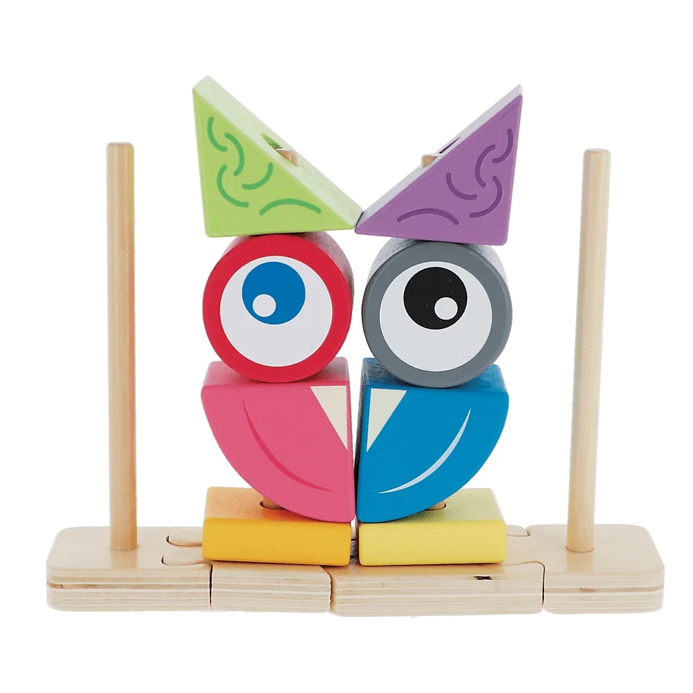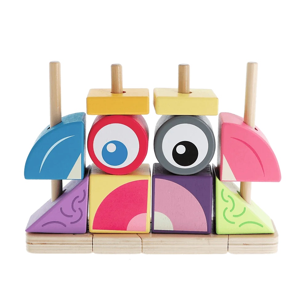 Urocza zabawka ogólnorozwojowa wykonana z wysokiej jakości drewna. Zawiera 8 propozycji konstrukcji w załączonej instrukcji, ale to tak naprawdę nieograniczona ilość możliwości tworzenia wielobarwnych, zabawnych figur. Super zabawa, którą również można podzielić w grupie między dziećmi.
