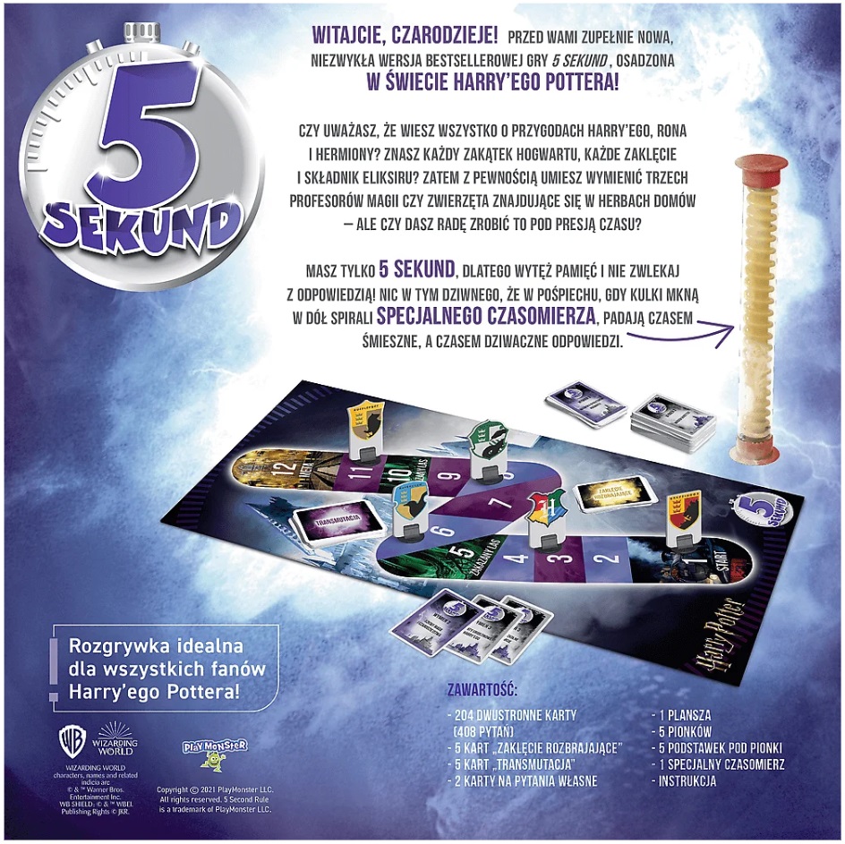 5 sekund Harry Potter przypadnie Ci do gustu! Kultowa gra towarzyska to rozgrywka, w której masz tylko 5 sekund, żeby dobrze odpowiedzieć na pytanie.