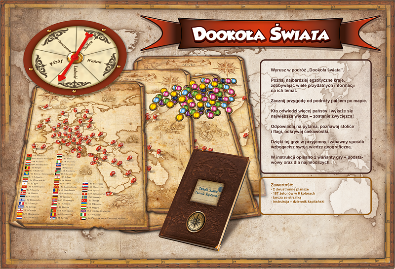 Wyrusz w podróż dookoła świata. Poznaj najbardziej egzotyczne kraje, zdobywając wiele przydatnych informacji na ich temat. Zacznij podróż od podróży palcem po mapie. Kto odwiedzi więcej państw, zostaje zwycięzcą. Odpowiadaj na pytania, poznawaj stolice i flagi, odkrywaj ciekawostki.