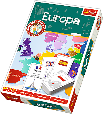 Mały Odkrywca idzie do szkoły – Europa to gra, w której sprawdzisz swoją wiedzę na temat naszego kontynentu. Dzięki niej poznasz flagi, stolice i języki państw europejskich, a także najważniejsze budowle. Jest to gra o walorach edukacyjnych z pięcioma emocjonującymi wariantami – doskonałe połączenie zabawy i nauki. Gra zawiera 5 wariantów rozgrywki.