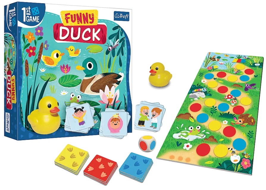 Pierwsza gra planszowa Funny Duck jest dostosowana dla dzieci już od 2,5 roku życia. Zawiera proste zasady, atrakcyjne ilustracje i duże drewniane elementy.