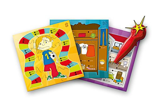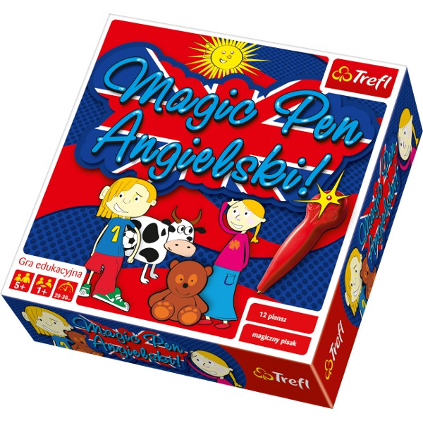 Edukacyjna gra dla najmłodszych wspomagająca naukę języka angielskiego. 12 plansz edukacyjnych i magiczny pisak, który świeci i wydaje dźwięki, zachęcą dziecko do poznawania nowych zwrotów i słówek oraz kojarzenia ich z obrazkowym odpowiednikiem. Do każdej planszy dołączyliśmy instrukcję z zadaniem, które dziecko może wykonać samodzielnie lub z towarzyszem zabawy, w zależności od wybranego wariantu gry. Poprawne odpowiedzi, czyli zaznaczenie pola przy właściwym obrazku, nagradzane są kolorami i dźwiękami magicznego pisaka, co dodatkowo zachęca do zabawy i pozwala na szybsze zapamiętanie nowych pojęć.