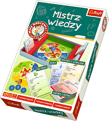 Mały Odkrywca idzie do szkoły – Mistrz wiedzy to gra, która zawiera 300 pytań o zróżnicowanym stopniu trudności dotyczących różnych dziedzin. Pytania podzielone są na 4 kategorie: przyroda, nauka, historia i wynalazki oraz kultura i sztuka. Trzy warianty rozgrywki gwarantują dobrą zabawę dla całej rodziny. Jest to gra o walorach edukacyjnych, doskonałe połączenie zabawy i nauki.Granie trenuje pamięć, ćwiczy umiejętność skupienia uwagi oraz logicznego myślenia.