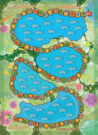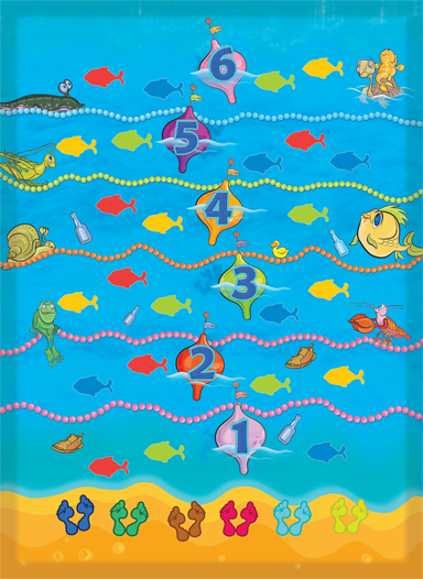 Ryby - w jeziorze roi się od smakowitych ryb, ale zadaniem graczy jest złowienie jak najdorodniejszych okazów i zdobycie największej ilości punktów. Głęboka woda zakrywa ryby i gracze nie będą widzieli, co akurat złapali na wędkę. Ale nie traćcie czujności, możecie zapamiętać rozłożenie ryb podczas zarybiania i łowić tam, gdzie podpowiada wam bystre oko i świetna pamięć. Uważajcie, bo ktoś zaśmiecił jezioro i możecie natknąć się na dziurawy but albo puszkę, za które otrzymacie punkty ujemne. Jeśli przeciwnik będzie zajęty nakładaniem przynęty albo ryba wskoczy mu z powrotem do wody, macie szansę na większy połów. Chwytajcie po wędki i biegnijcie na plażę! Zasady połowy oparte są na grze typu memos.
