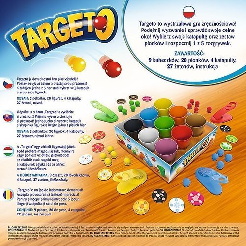 W grze Targeto gracze starają się trafić pionkami do kubeczków za pomocą swojej katapulty. Przygotowanie każdej rozgrywki zależy od wariantu, który wybiorą gracze spośród 5 różnych propozycji zabawy zawartych w instrukcji.