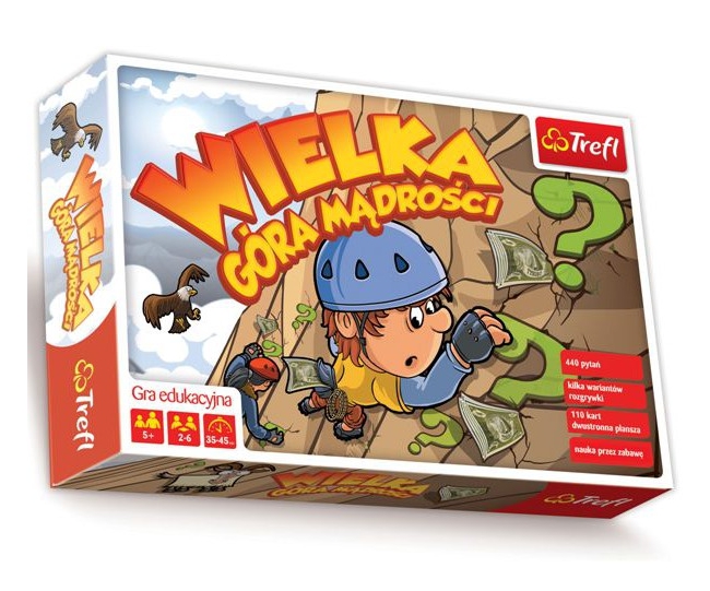 Wielka Góra Mądrości. Chcesz wzbogacić swoją wiedzę przyrodniczą, a może jesteś znawcą świata zwierząt i z łatwością pokonasz przeciwników? Odpowiadaj na pytania i ścigaj się z innymi graczami w wędrówce na szczyt! Doskonała gra edukacyjna pełna faktów i ciekawostek ze świata zwierząt i roślin. Gra zawiera kilka wariantów rozgrywki. Pytania są podzielone na cztery kategorie i mają różny poziom trudności.
