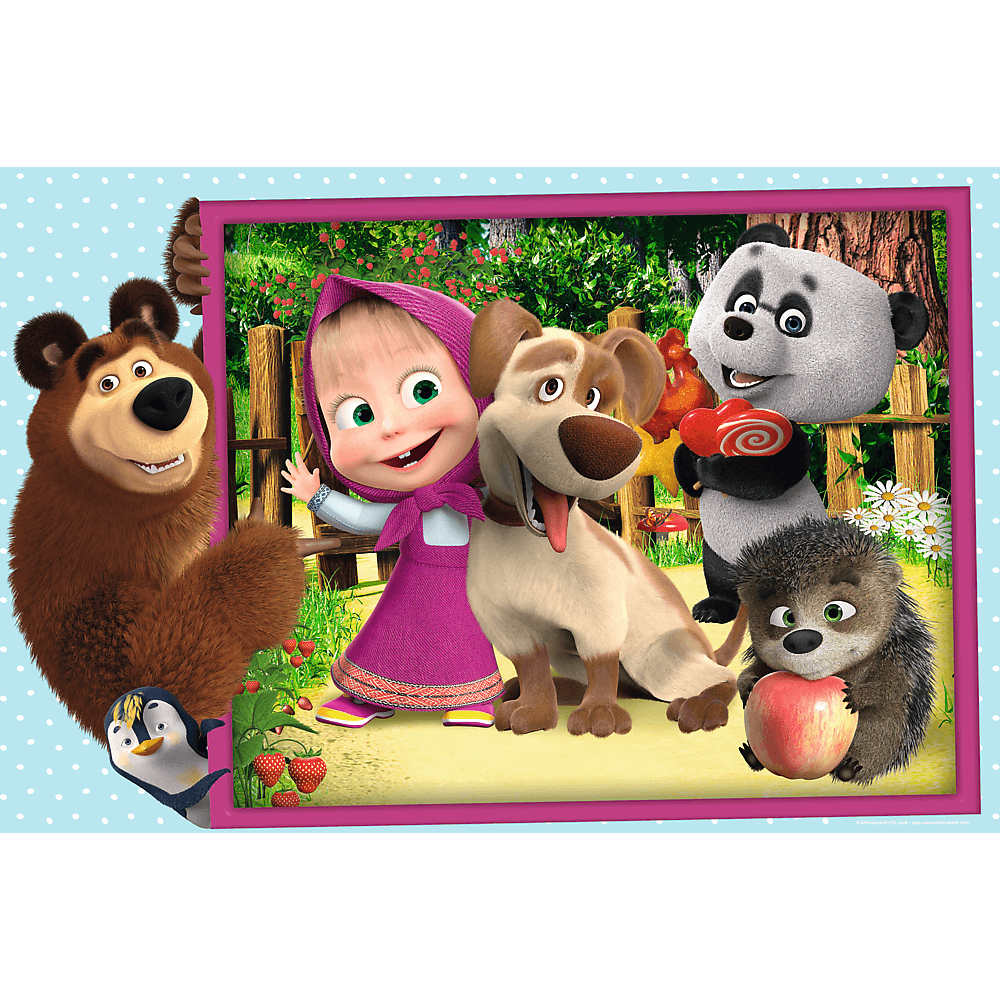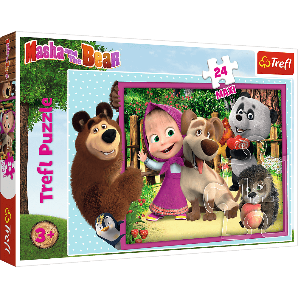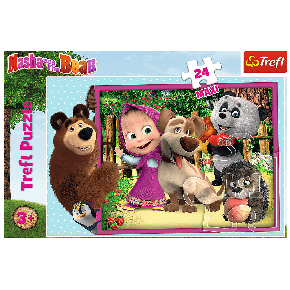 Puzzle 24 maxi składające się z 24 bardzo dużych elementów, zaprojektowaną z myślą o wszystkich fanach i fankach bajki Masza i Niedźwiedź. Po ułożeniu układanki powstanie duży obrazek, o wymiarach 600x400mm.