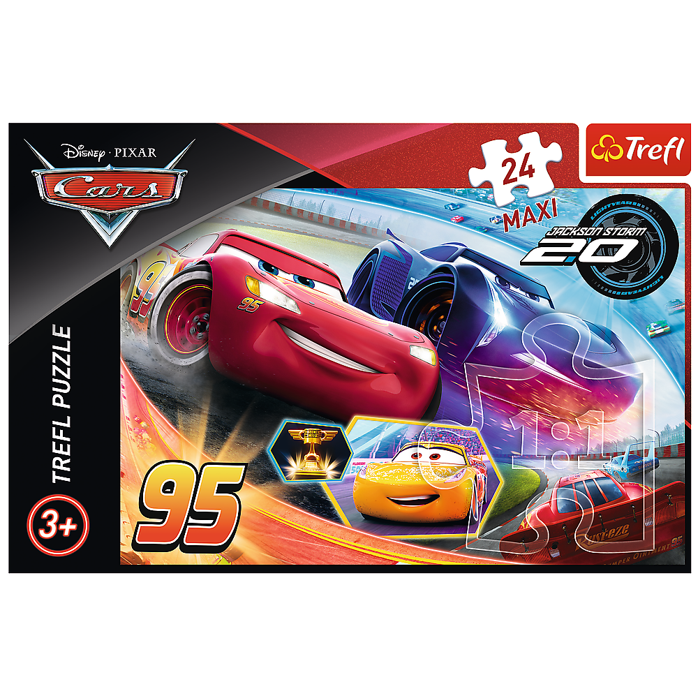 Puzzle stworzone specjalnie z myślą o dzieciach powyżej 3 roku życia. Układankę tworzą 24 bardzo duże puzzlowe elementy, dzięki czemu dzieci poradzą sobie z samodzielnym ułożeniem obrazka. Zabawa rozwija zdolności manualne, spostrzegawczość i daje radość samodzielnego tworzenia. Piękna grafika z filmu animowanego Cars 3 Disneya sprawi radość każdemu dziecku.