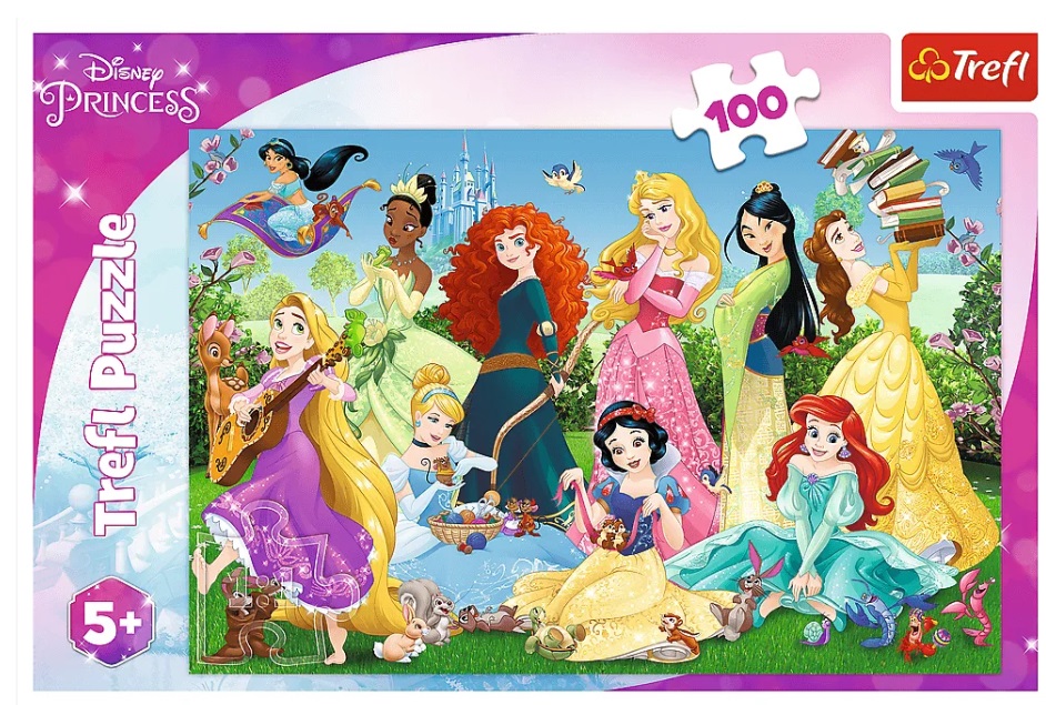 Czarujące Księżniczki to puzzle składające się ze 100 elementów, zaprojektowane z myślą o wszystkich wielbicielkach księżniczek z filmów animowanych Disneya. Po ułożeniu układanki powstanie obrazek o wymiarach 410x278 mm.