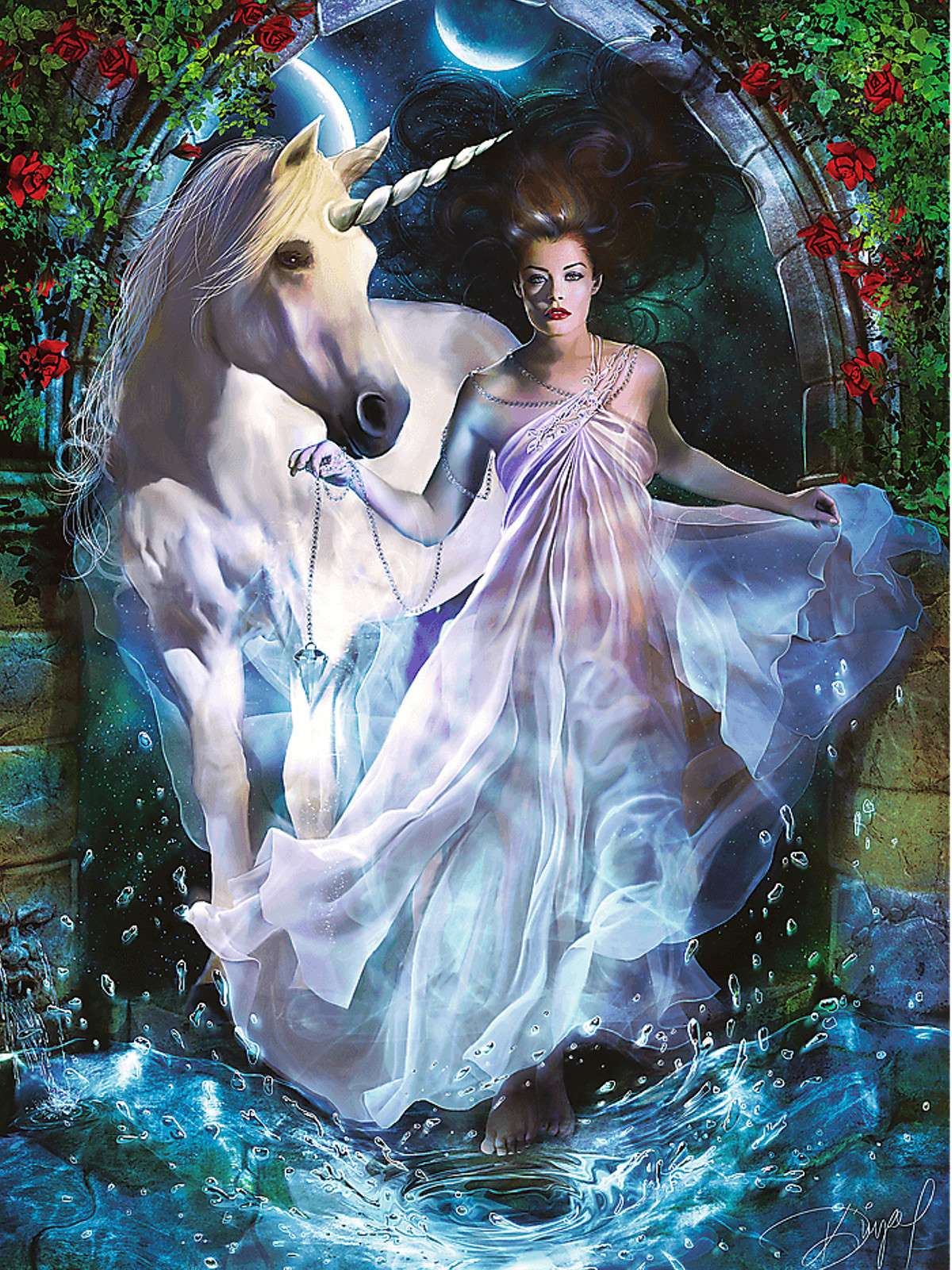 Magiczny wszechświat to puzzle składające się z 1000 elementów przedstawiające magiczny obraz kobiety z jednorożcem. Po ułożeniu powstanie obrazek o wymiarach 68x48 cm. Wysoką jakość, nasycenie kolorów i bezpieczeństwo układania zapewnia wykorzystanie materiałów ekologicznych.