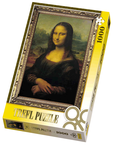 Trefl Puzzle Mona Lisa 1000 elementów pozwalają ułożyć obrazek przestawiający sławną Mona Lisę. Ten olejny obraz w oryginale został namalowany na drewnie topoli o wymiarach 77 x 53 cm przez słynnego malarza włoskiego renesansu Leonarda da Vinci. Połącz wszystkie 1000 elementów układając puzzle z Mona Lisą i zamknij całość w antyramie. Otrzymasz światowej sławy obraz gotowy do powieszenia w Twoim pokoju.