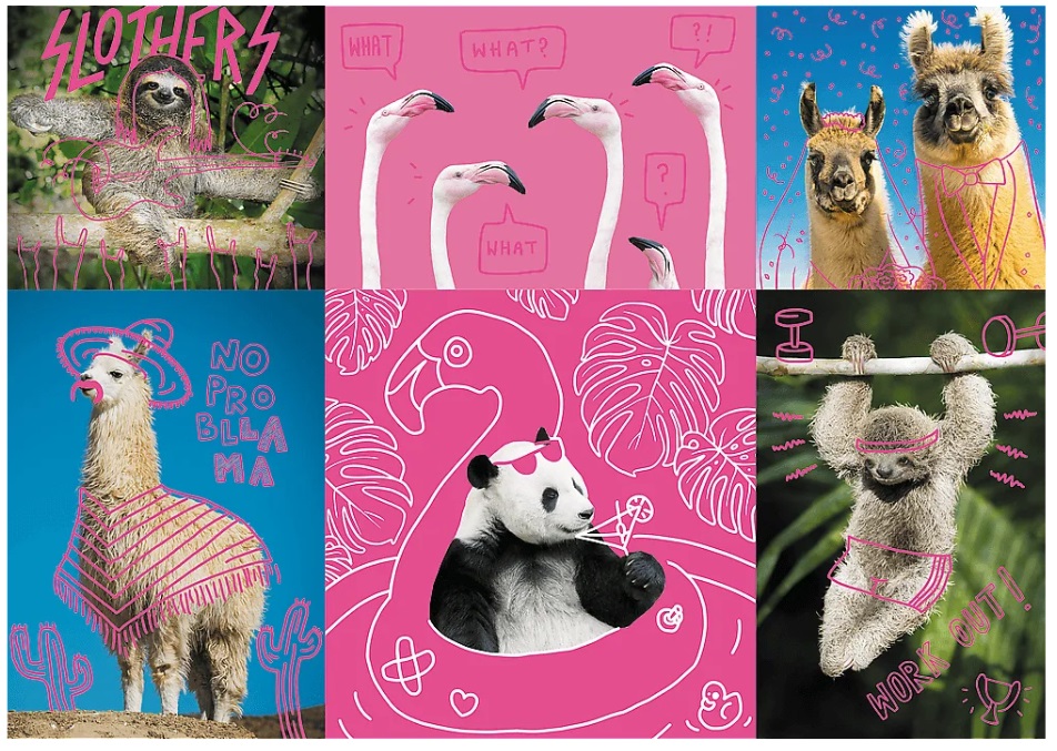 Puzzle składające się z 1000 elementów przedstawiające naprawdę szalone zwierzaki. Po ułożeniu powstanie obrazek o wymiarach 683x480 mm.