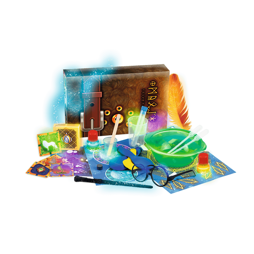 Przenieś się do świata magii i czarów. Zacznij od przygotowania czarodziejskiej czapki, kryształowej kuli i zaczarowanego długopisu, a następnie wykonuj eksperymenty, wypowiadając magiczne zaklęcia zawarte w specjalnie przygotowanej czarodziejskiej książeczce. Użyj do tego różdżki dołączonej do zestawu. Przygotuj tajemnicze eliksiry, odczytaj zaszyfrowaną wiadomość i dowiedz się jaka nauka za tym stoi. W zestawie wyjątkowa walizeczka z dedykowaną grafiką do przechowywania komponentów. Poczuj się jak prawdziwy naukowiec-czarodziej z zestawem „Fabryka czarodziejskich sztuczek”. Do wykonania aż 19 magicznych eksperymentów.