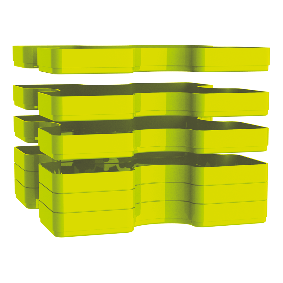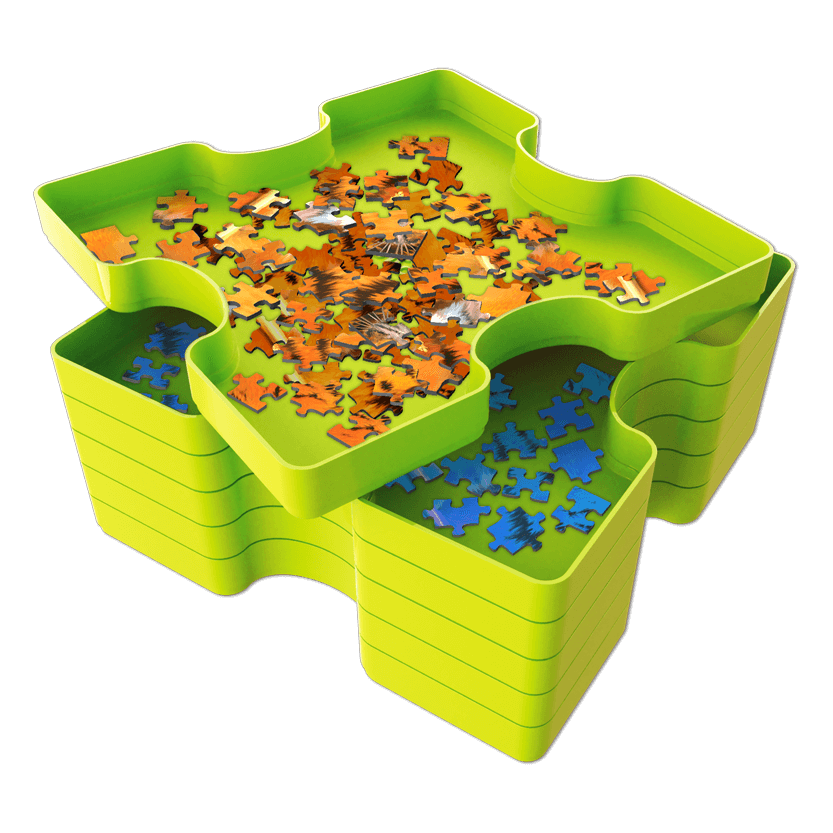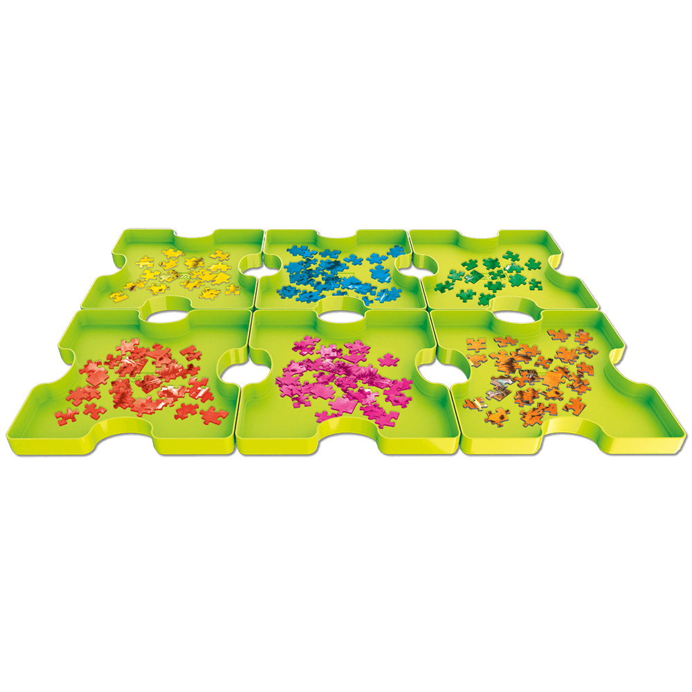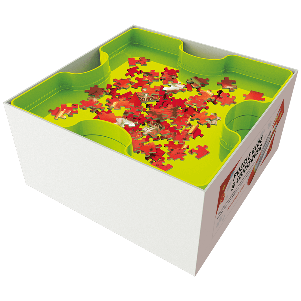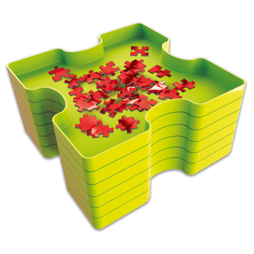 Łatwe sortowanie – posegreguj elementy puzzli według ich koloru. Sprawna organizacja – połącz pojemniki by zaoszczędzić miejsce i zorganizować przestrzeń do układania. Wygodne przechowywanie i przenoszenie – dopasowane pudełko umożliwi łatwe przechowywanie i przenoszenie pojemników z posortowanymi puzzlami. Idealne wykończenie – matowa powierzchnia antyrefl eksyjna wewnątrz każdego pojemnika niweluje odbicie światła. Wymiary tacki: 19x19 cm.