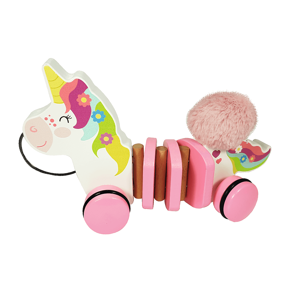 Jednorożec Lea z pluszowym ogonkiem wykonany został z naturalnego drewna. Jest doskonałą zabawką, która towarzyszy najmłodszym przy stawianiu pierwszych kroków. Zabawka jest znakomitym rozwiązaniem dla dzieci od 12 miesiąca życia. Jednorożec Lea wyposażony jest w sznureczek i małe drewniane kółeczka, dzięki którym zawsze podąża za swoim opiekunem. Wszystkie materiały wykorzystane do stworzenia zabawki posiadają atesty, a także zostały pomalowane nietoksycznymi farbami.
