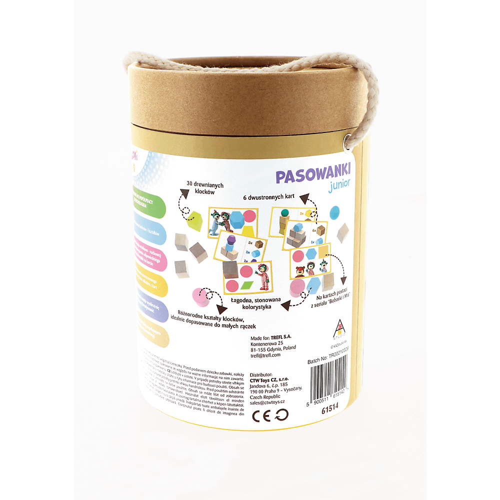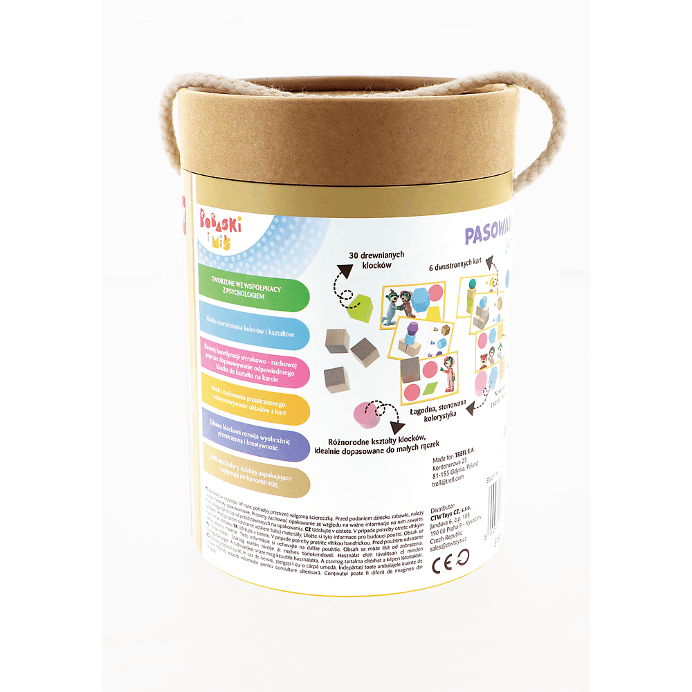 A na kartach nie kto inny jak postacie z ulubionego serialu Bobaski i Miś. Zabawka wspiera rozwój motoryki małej oraz koordynacji wzrokowo-ruchowej, a także rozwija wyobraźnię przestrzenną