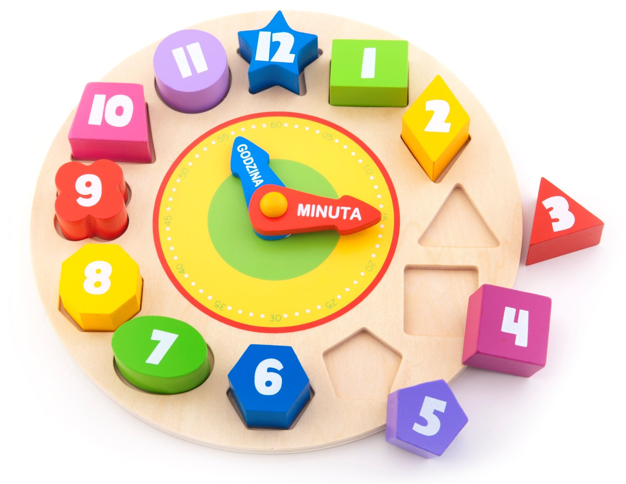 Tik Tak czasu znak to kolorowy zegar wykonany z jasnego, naturalnego drewna jest doskonałą zabawką ogólnorozwojową. Znakomite rozwiązanie dla dzieci od 3 roku życia. Tik Tak Czasu Znak kształtuje umiejętności logicznego myślenia i koncentracji, wspomaga naukę nazywania kolorów, liczb i godzin, wzmacnia koordynację wzrokowo-ruchową, jak również jest doskonałą zabawką do ćwiczenia zręczności i umiejętności manualnych. Wszystkie materiały wykorzystane do stworzenia zabawki posiadają atesty, a także zostały pomalowane nietoksycznymi farbami.