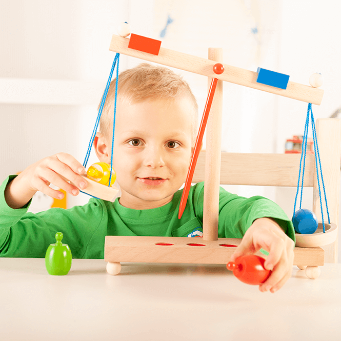 Gramy w kilogramy to zabawka drewniana idealna do dziecięcych zabaw. Posiada 4 odważniki o różnej gramaturze. Zabawka kształtuje umiejętności logicznego myślenia i koncentracji, wzmacnia koordynację wzrokowo-ruchową, jak również wspomaga ćwiczenie zręczności i umiejętności manualnych. Znakomite rozwiązanie dla dzieci od 3 roku życia. Wszystkie materiały wykorzystane do stworzenia zabawki posiadają atesty, a także zostały pomalowane nietoksycznymi farbami.