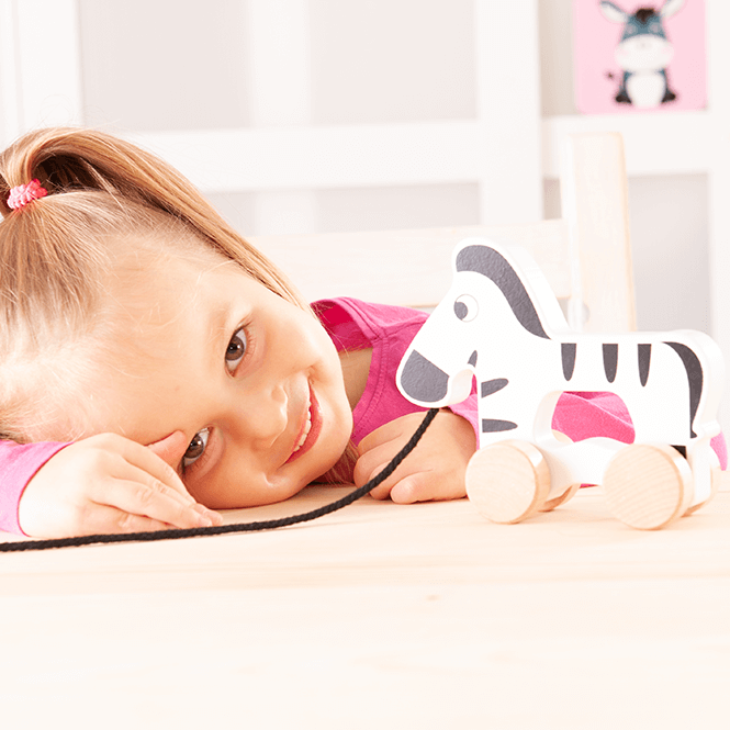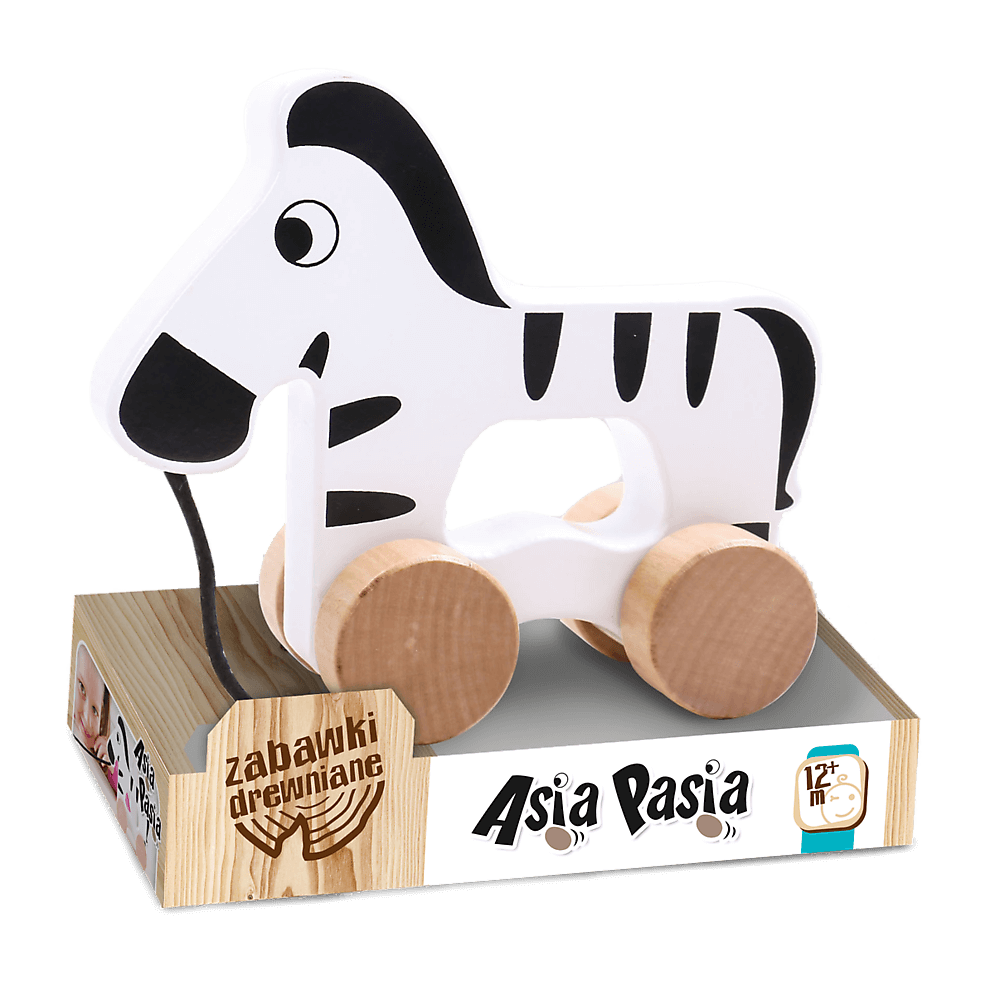 Zebra Asia Pasia wykonana z jasnego, naturalnego drewna jest doskonałą zabawką, która towarzyszy najmłodszym już przy stawianiu pierwszych kroków. Zabawka zachęca do wspólnych spacerów, rozwijając dodatkowo odruch chwytania, dzięki ergonomicznemu kształtowi zaprojektowanemu specjalnie dla małych rączek. Wszystkie materiały wykorzystane do stworzenia zabawki posiadają atesty, a także zostały pomalowane nietoksycznymi farbami