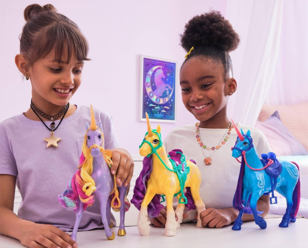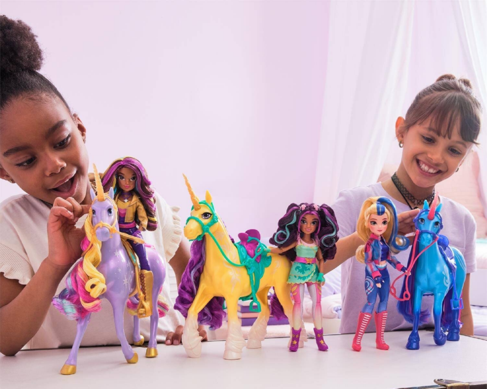 Wprowadź odrobinę magii do świata zabawy dzięki jednorożcowi Riverz serii Unicorn Academy! Ten piękny, 27-centymetrowy jednorożec to wierne odwzorowanie ukochanego bohatera, który towarzyszy Isabel w niezwykłych przygodach na Unicorn Island. River to łagodny i nieśmiały jednorożec, który zachwyca pięknymi detalami – posiada*perłowe oznaczenia Water Magic, błyszczący róg oraz kolorową, miękką grzywę i ogon, które można czesać. Dzięki ruchomej głowie dzieci mogą ożywiać postać i tworzyć własne historie pełne magii i emocji. Zestaw zawiera także zdejmowaną uzdę i siodło, co pozwala odgrywać sceny z serialu i rozwijać kreatywną zabawę. To idealny wybór dla dzieci, które kochają jednorożce, świat fantasy i opowieści o przyjaźni.