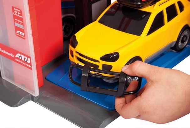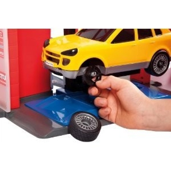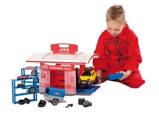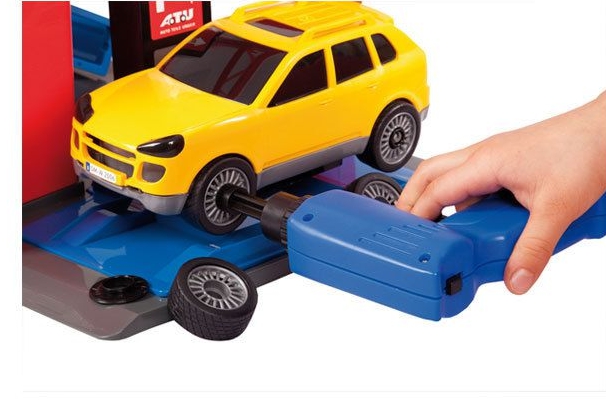 Car Tuning Center to doskonały prezent dla fanów motoryzacji, których zamiłowaniem jest nie tylko zmiana koloru samochodów. Zestaw zawiera: 35 centymetrowy warsztat, komplet regałów, samochód z oponami, gumowe opony, felgi, klucze zderzaki, hak oraz bagażnik. Dodatkowo komplet zawiera elektryczny podnośnik i elektryczną wkrętarkę do kół, które wyglądają jak prawdziwe.