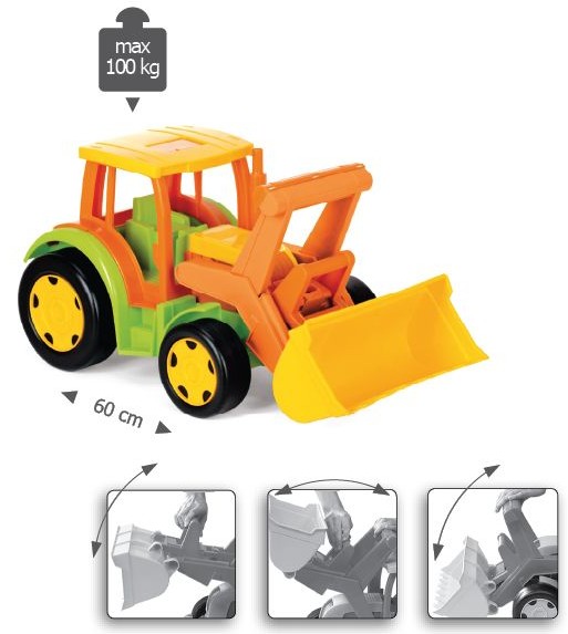 Gigant traktor letni – masywny, duży traktor o udźwigu 100 kg. Do traktora można również dokupić Wózek – Przyczepę, poszerzając jej funkcje zabawowe.