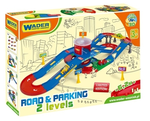 Wader Kid Cars 3D 2 Poziomy to wyjątkowa zabawka konstrukcyjna. W skład zestawu wchodzi 2 poziomowy parking, na który można się dostać szerokimi podejściami, 6.2 m drogi oraz autka. Zestaw można łączyć z pozostałymi trasami Kid Cars 3D.