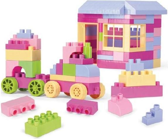 Zestaw klocków w atrakcyjnych, pastelowych kolorach, dedykowany dla dziewczynek. Zestaw daje możliwość tworzenia wielu ciekawych budowli, takich jak domki, samochody i wiele innych. Klocki wyróżniają się starannym wykonaniem i dużą wytrzymałością a ze względu na swoje gabaryty zapewniają bezpieczną zabawę dzieciom już od pierwszego roku życia. Pobudzają kreatywność oraz doskonale rozwijają zdolności manualne najmłodszych. Całość zapakowana jest w kartonowe opakowanie z rączką. Produkt wykonany w Polsce z certyfikowanych, bezpiecznych i trwałych elementów.
