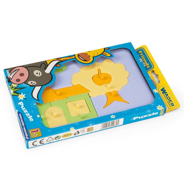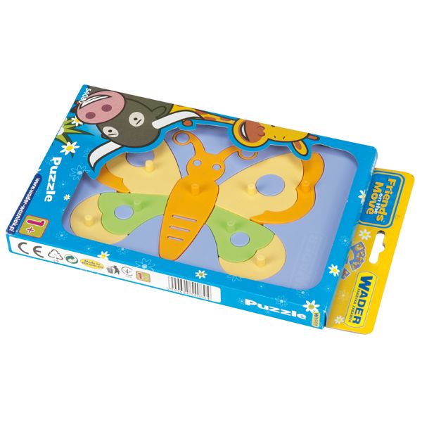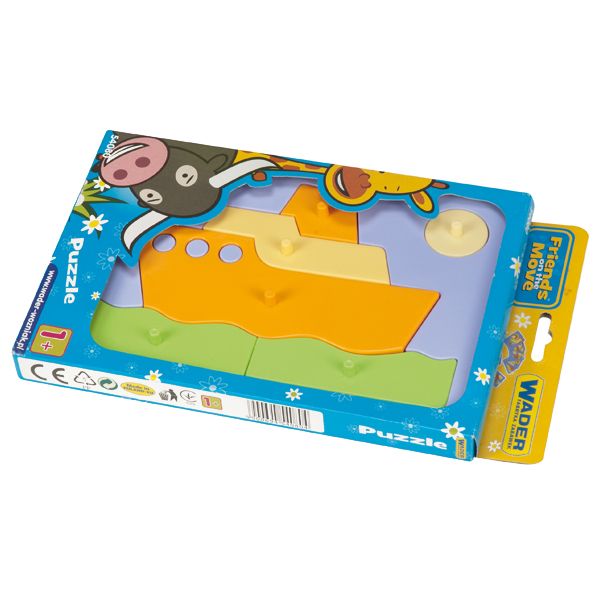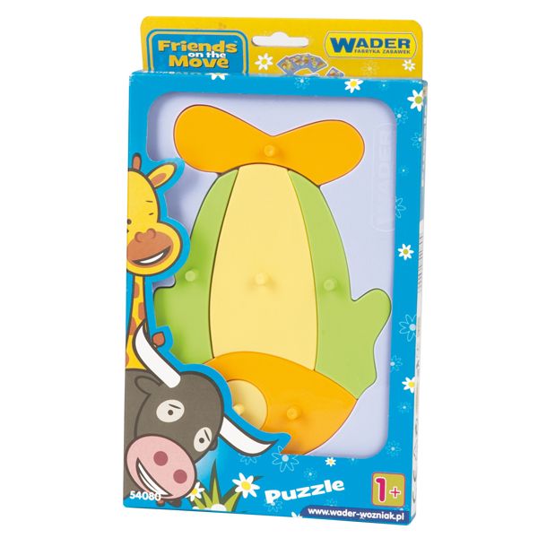 Puzzle Edukacyjne z serii licencyjnej „Friends on The Move” to seria kolorowych układanek, występują w ośmiu różnych propozycjach kształtów: statek, łódka, kwiatek, motylek, kogut, rybki oraz domek z drzewkiem. Każdy element układanki posiada zgrabny uchwyt, który pozwala maluchom ułożyć ulubioną figurę. Poszczególne elementy zabawki mogą służyć także do odrysowywania na kartce papieru tworząc malowanki.